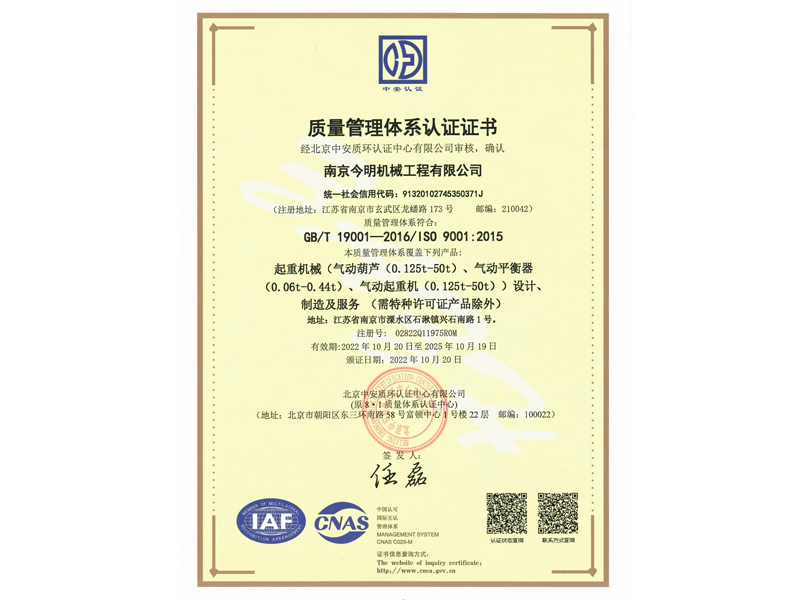 南京今明機械工程有限公司成立于一九九三年,歷經二十多年磨練,沉淀了一批跟隨企業共同成長,技藝超凡、資深的高級工程師、技師、以及熟練的技術工人。企業的歷練和人才的智慧,鑄造出企業的核心競爭力。十年磨一劍。本著技術興業,多年來,企業致力于氣動起重產品的研發與生產。在國內氣動起重裝備領域具有良好的聲譽。并積極地與國家起重運輸機械質量監督檢驗中心、北京起重運輸機械設計研究院、江蘇省科技廳、南航等高校和科研單位緊密合作,與國外知名企業建立戰略合作伙伴關系,廣泛吸收國內外新技術經驗,力求趕超國際先進氣動起重裝備的技術,打造國內氣動起重裝備行業新軍。目前,企業已開發五大系列近百個品種的產品,覆蓋了化工、汽車、機械、冶金、礦山等二十多個行業,并在全國三十多個省份擁有客戶。企業堅持用心做好每個環節,精心打造讓客戶滿意的產品,力求...瀏覽更多 +